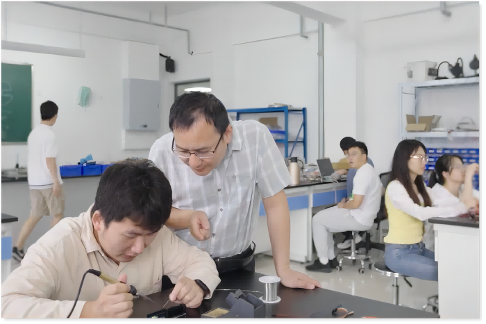 为了提高学生的程序设计能力,他还引入了更先进的教学理念融合教学和项目化教学,推动程序设计类课程的教学改革。当他发现学生的编程能力偏弱时,他每周为参赛同学讲解C语言编程知识和技巧。每当学生遇到困难时,他身体力行,帮助学生克服困难,不厌其烦。